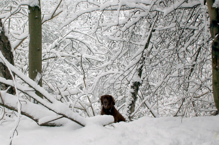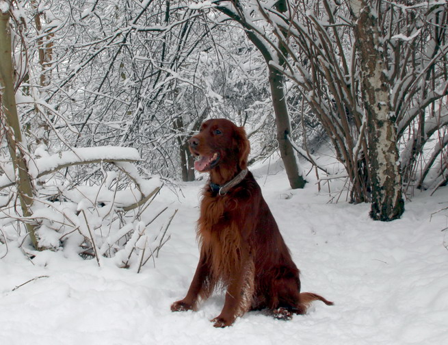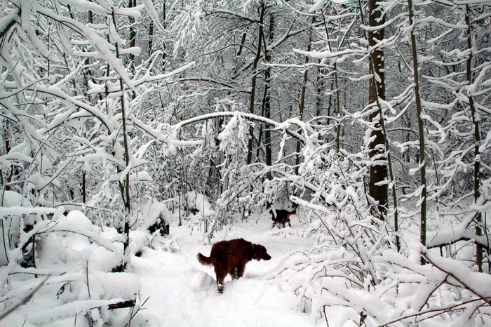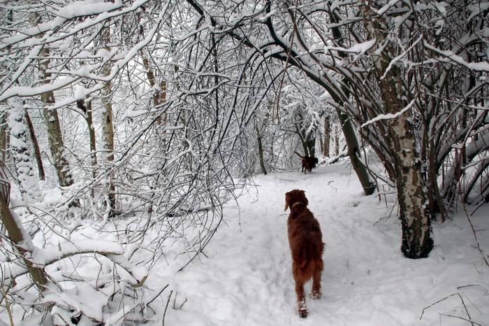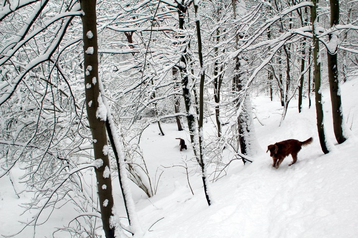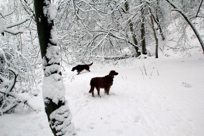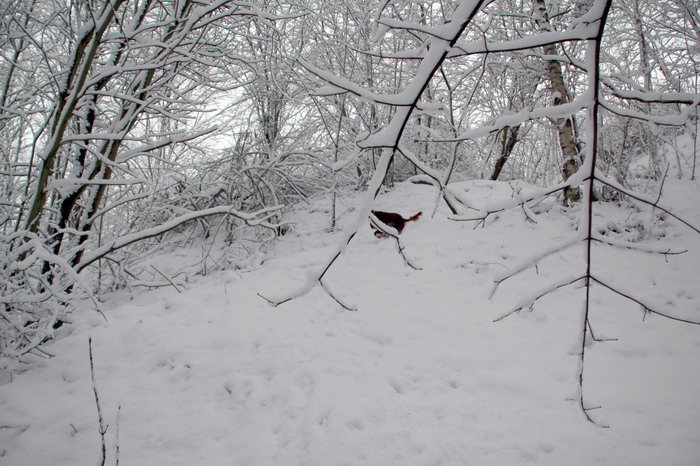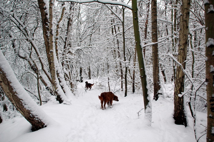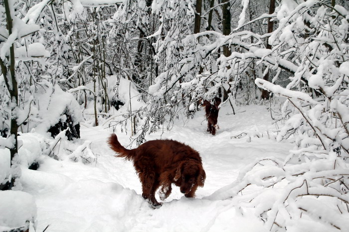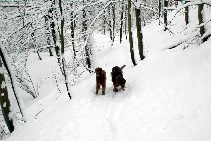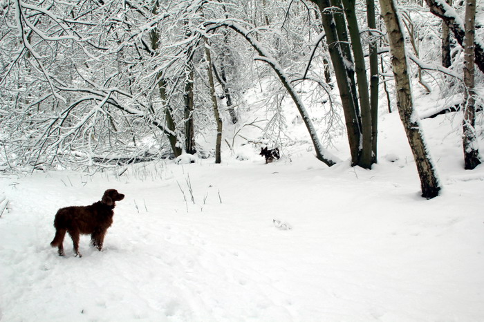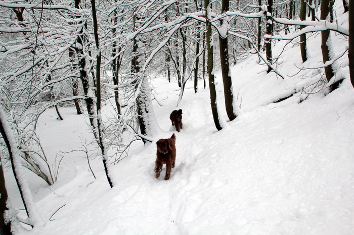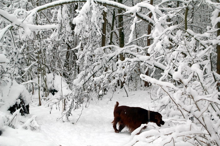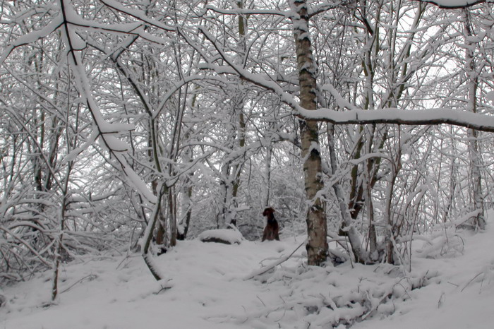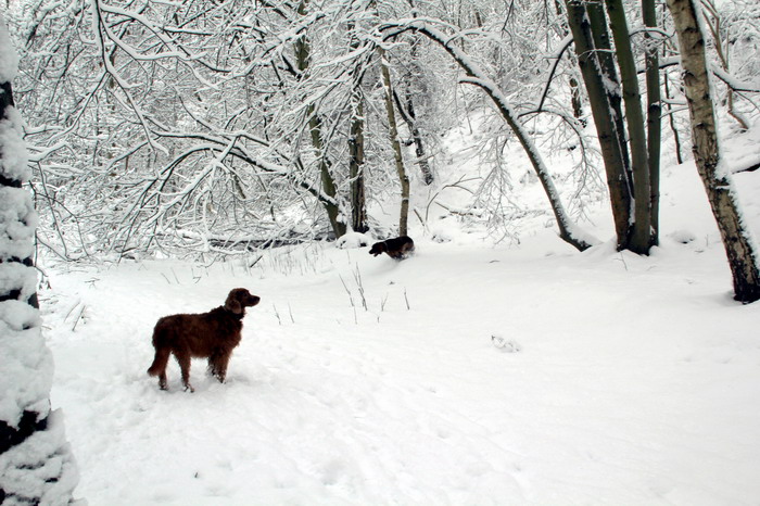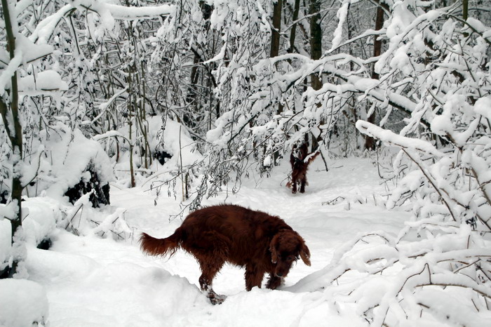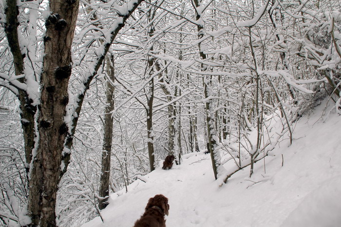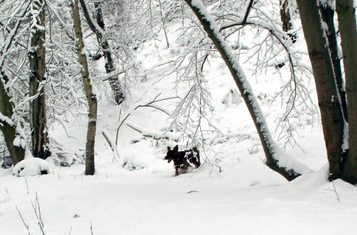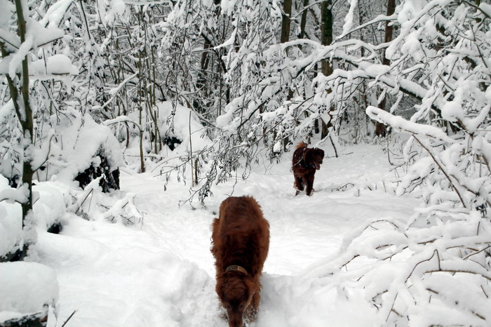 Traumwanderung im Schnee in unserem Gelaende mit Bho-Ghy & Laginia 19. 12. 2010