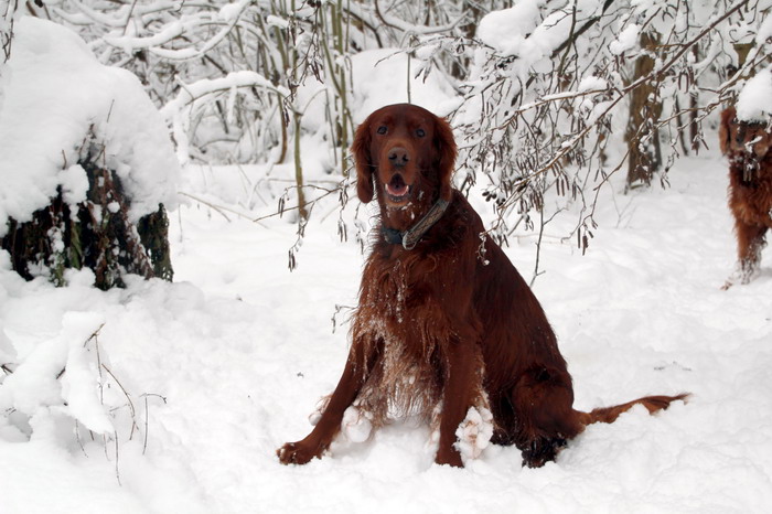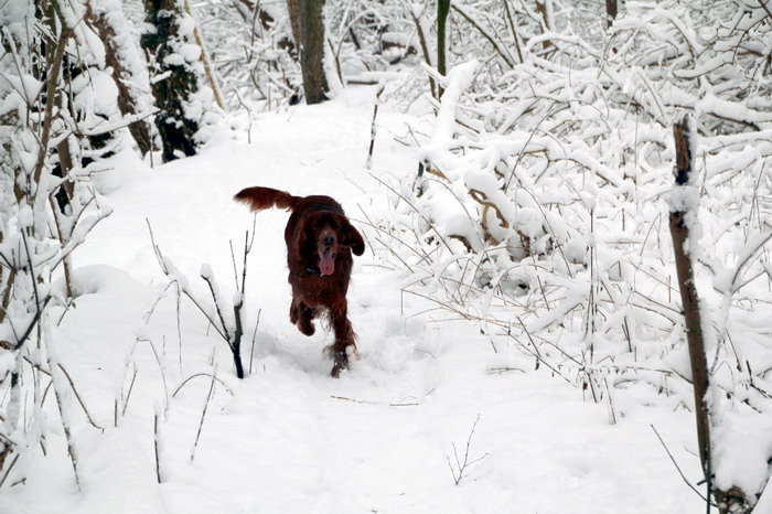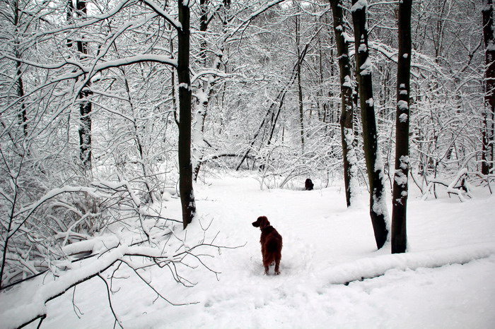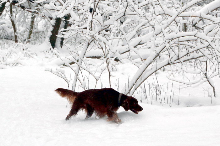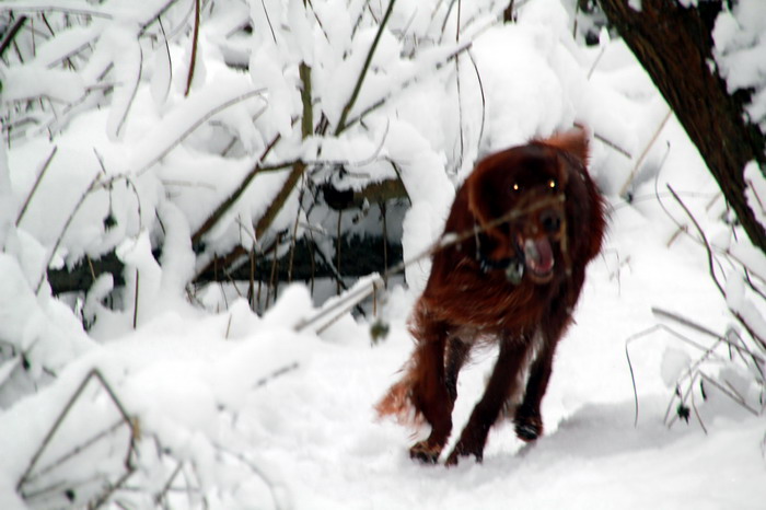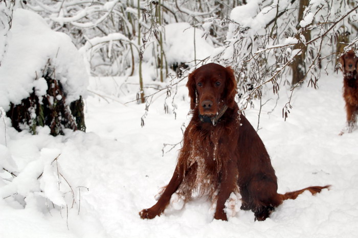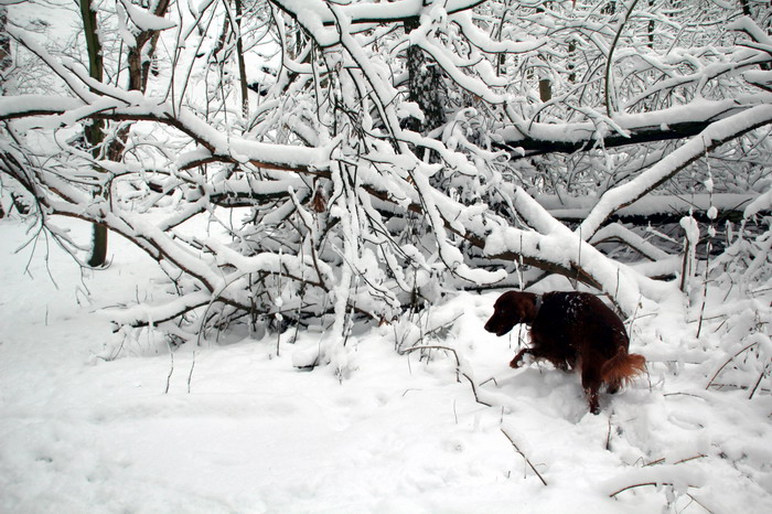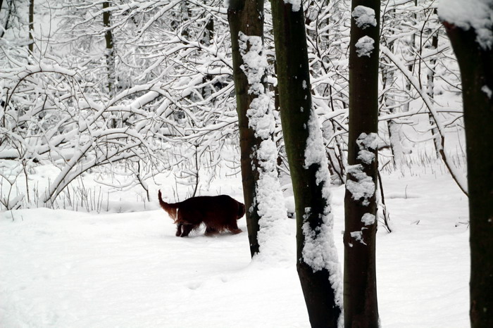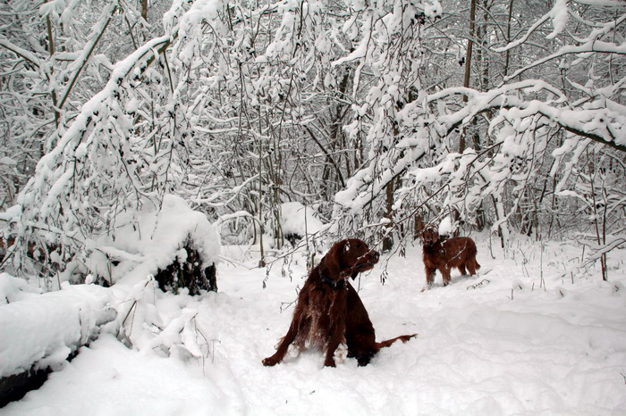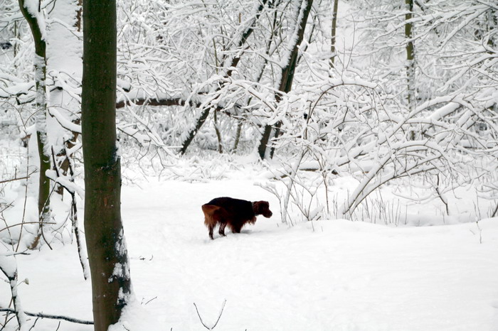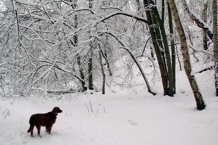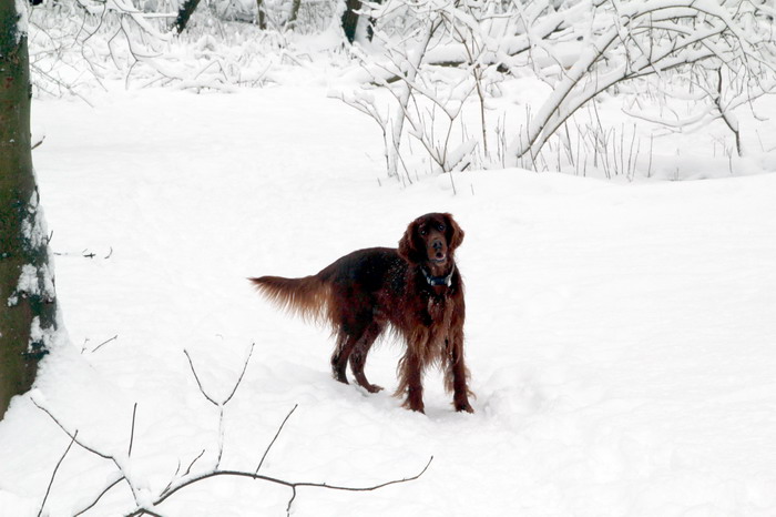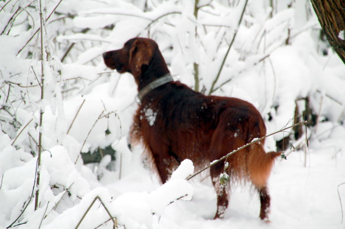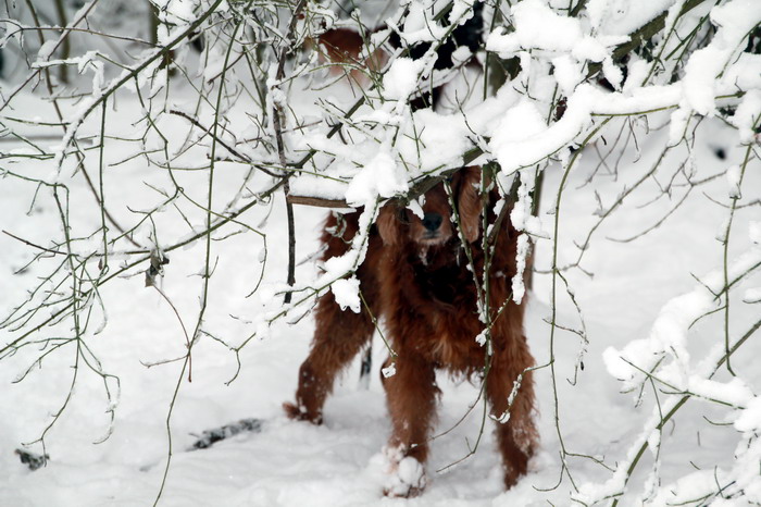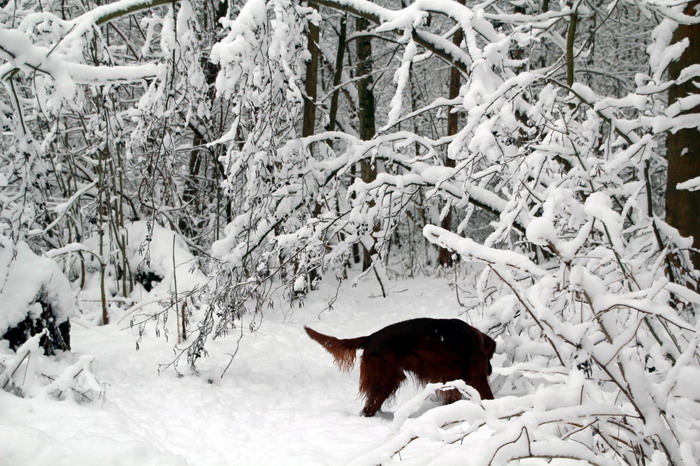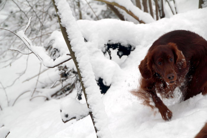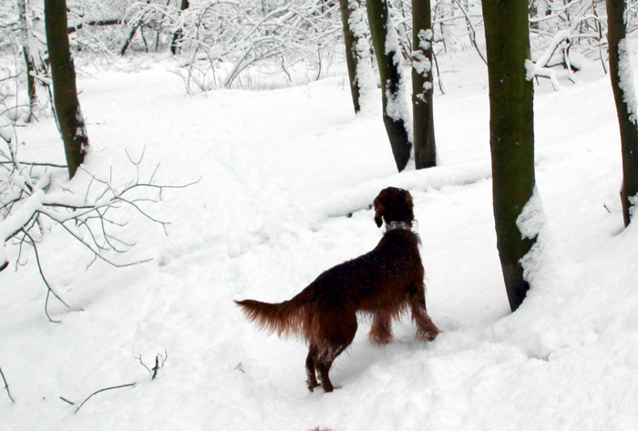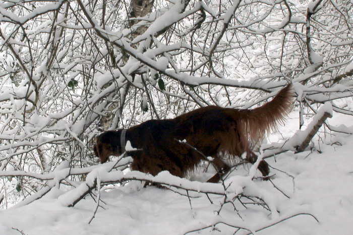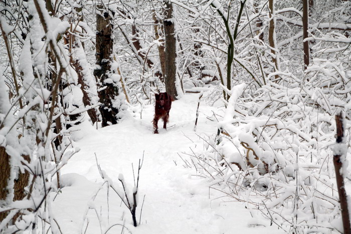 Traumwanderung im Schnee in unserem Gelaende mit Bho-Ghy & Laginia 19. 12. 2010
