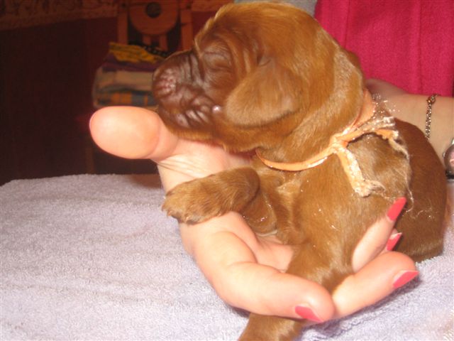 Bild 3878= Hündin, aprikot Bändchen, Baina