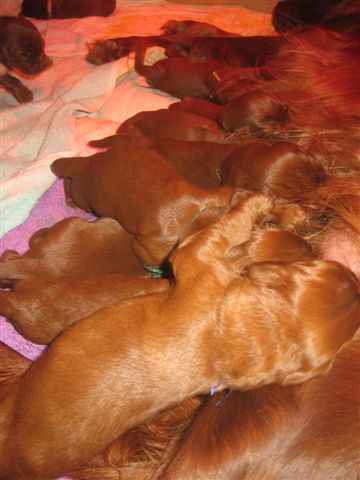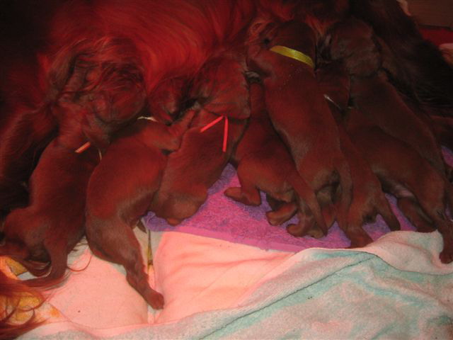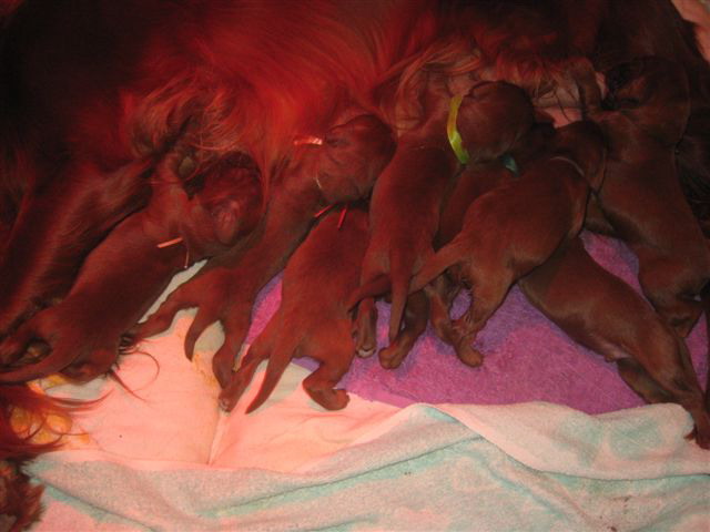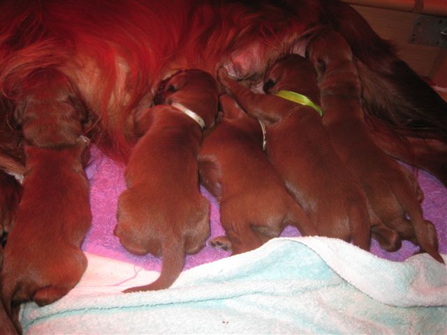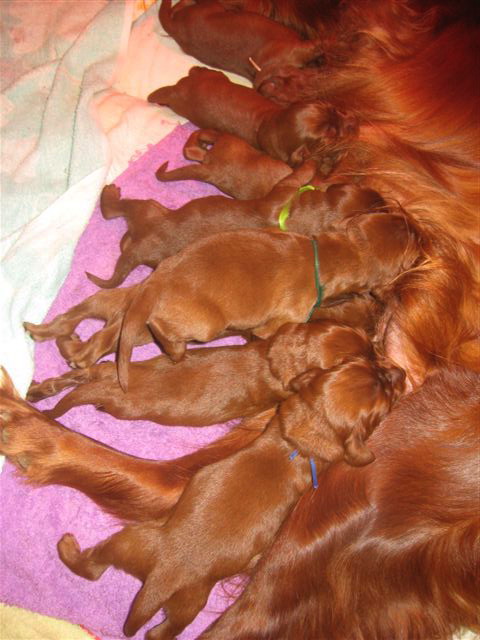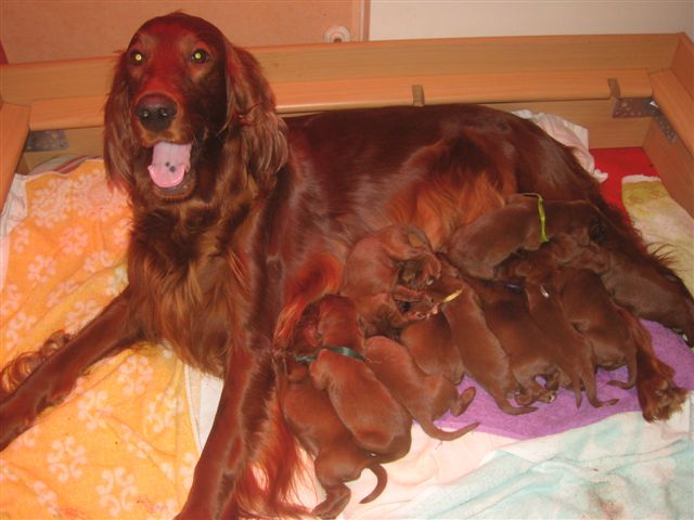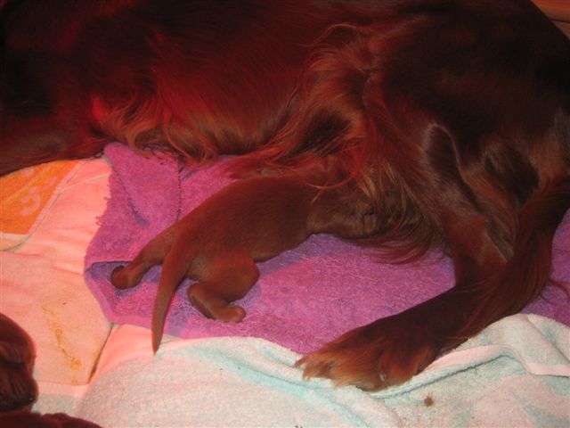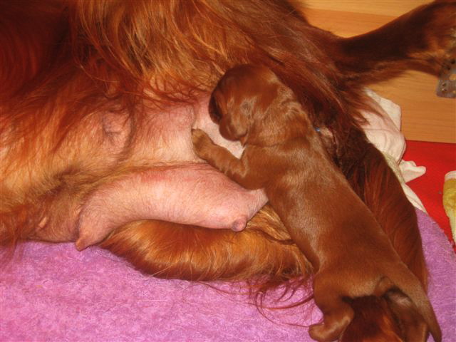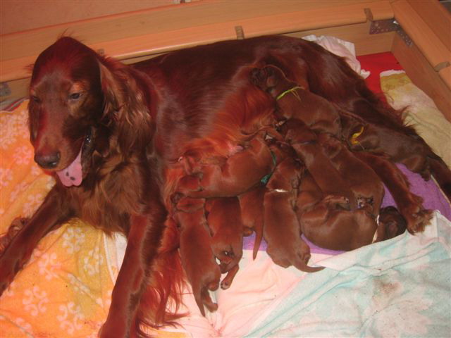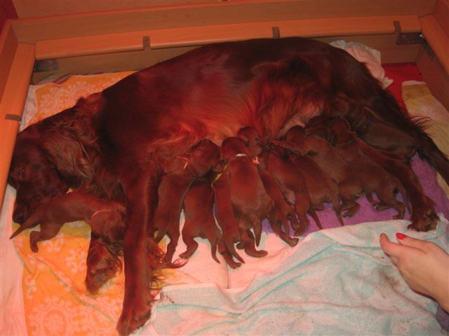 23.03.2010: Bho-Ghy ist zum 2. Mal Papa; Wir sind alle stolz auf die 11 Welpen von Leslie-Ann und Bho-Ghy; es sind 7 Rüden und 4 Hündinnen; Hier nun 5 Tage alt.