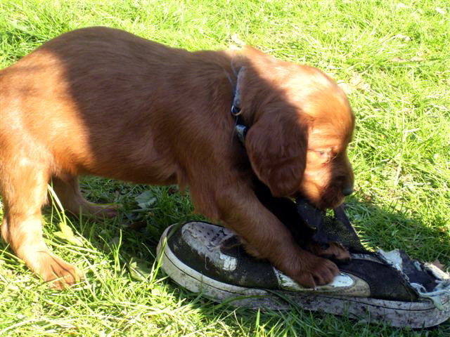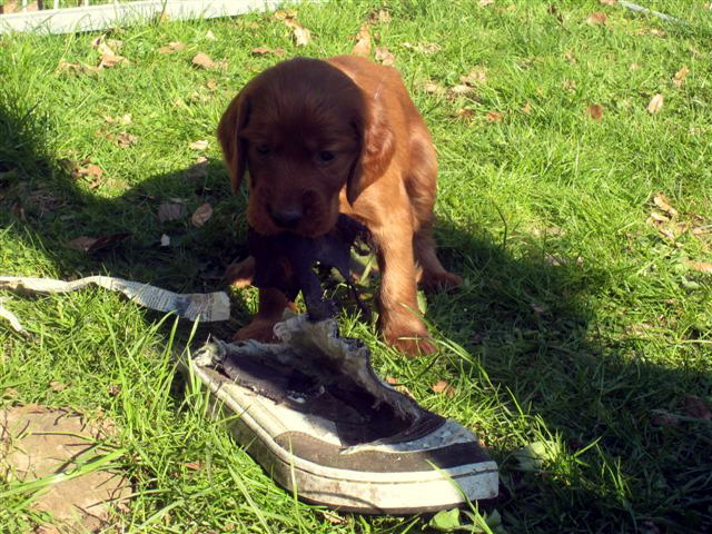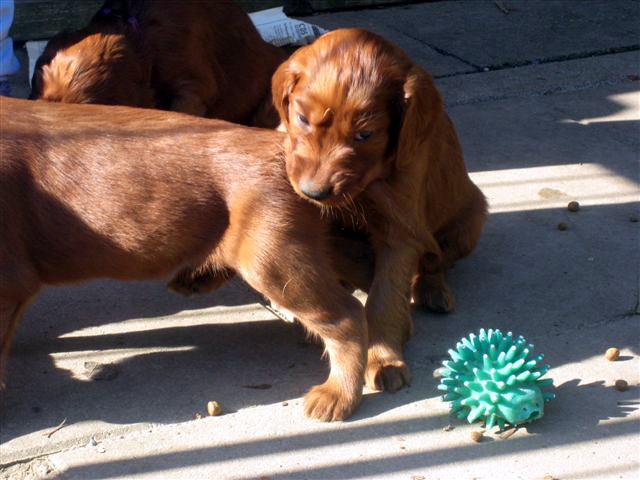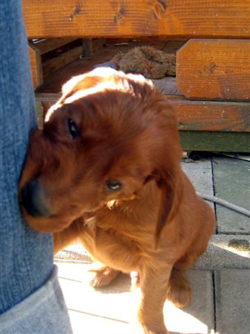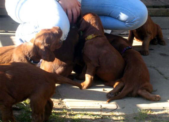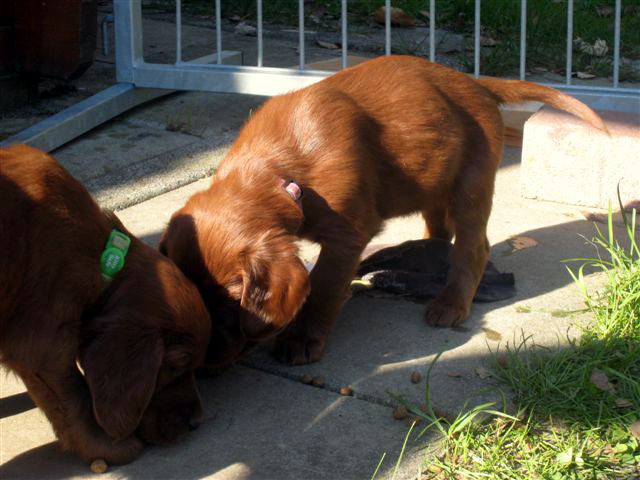 17.04.2010: 11 Welpen von Leslie-Ann und Bho-Ghy Überschrift: Wir sind nun, tagsüber, umgezogen. Bild 4141 = Der hat angefangen; Bild 4142 = Attacke; Bild 4150 = Abendbrot Bild 4160 = An mir kommt keiner vorbei! Bild 4162 = Hallo; Biba