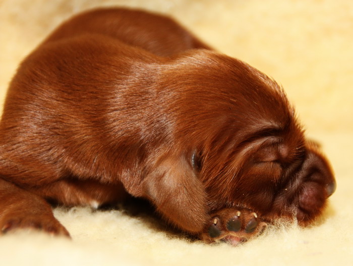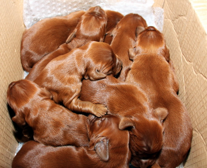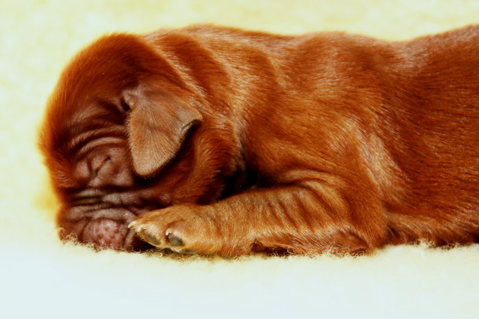 04.02.2010: Nun sind die Welpen 4 Tage alt. Alle 11 Welpen wurden einzeln fotografiert.