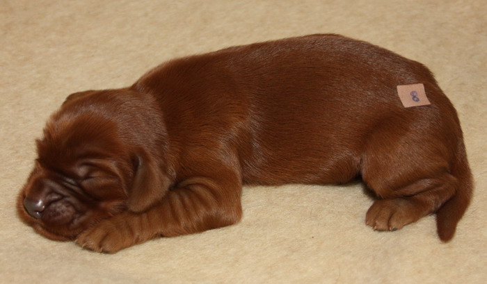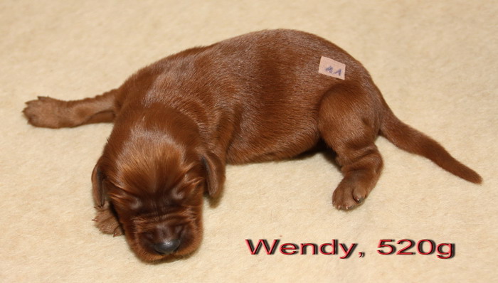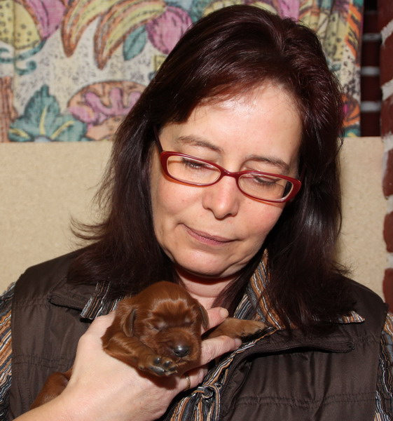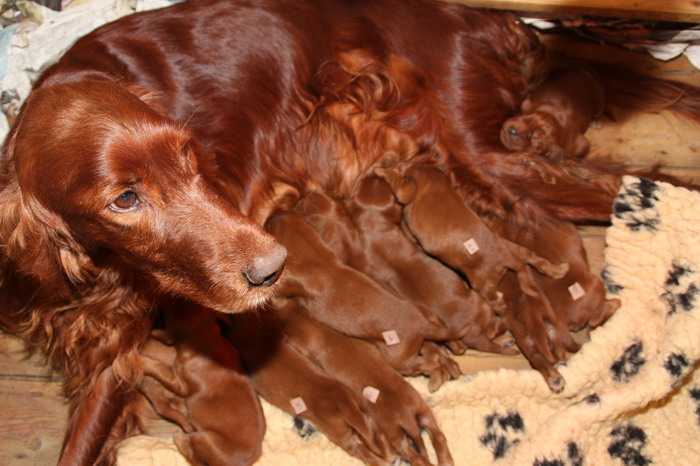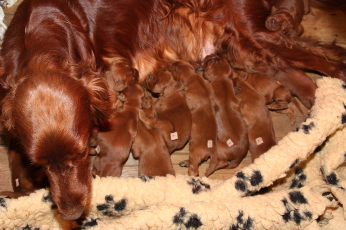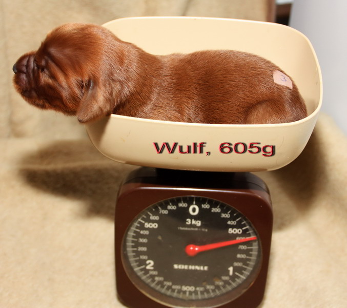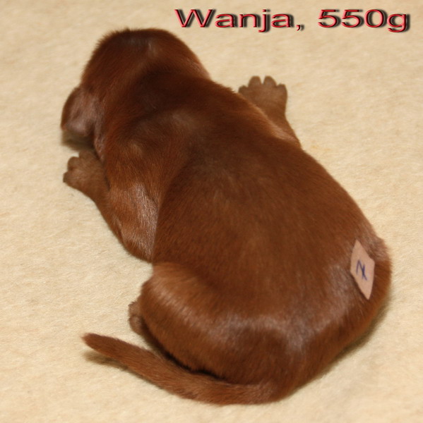 06.02.2010: Nun sind die Welpen 6 Tage alt. Alle 11 Welpen wurden heute getauft und gewogen, Corinna half mir dabei!