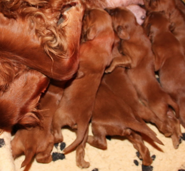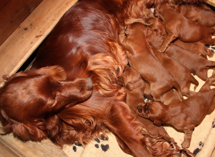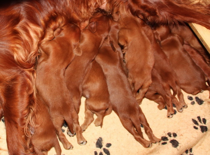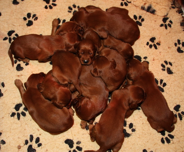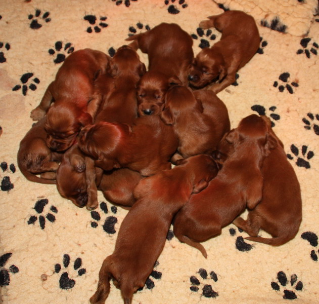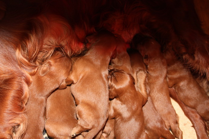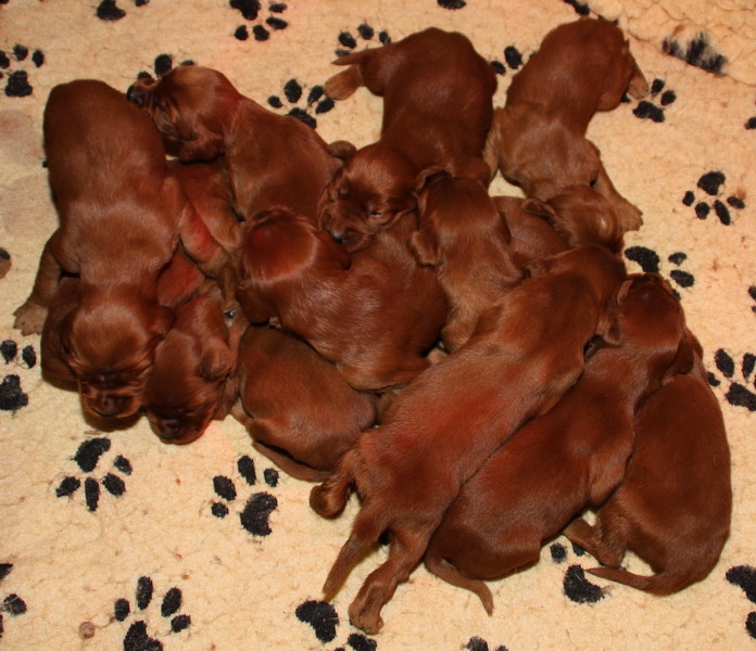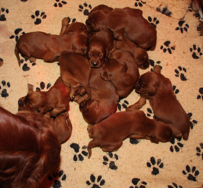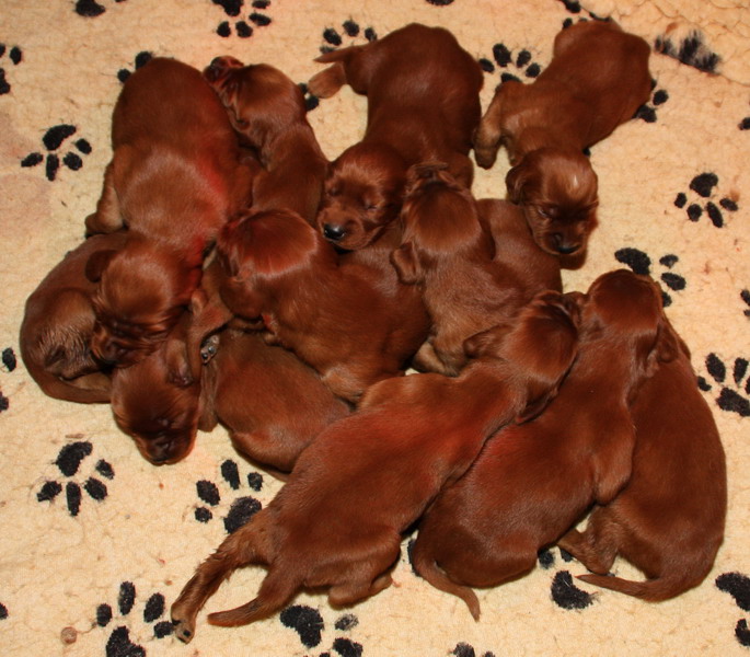 13.02.2010: Nun sind die Welpen 13 Tage alt. Alle 11 Welpen sind super wohlauf und putzmunter !