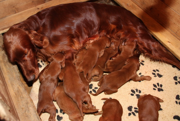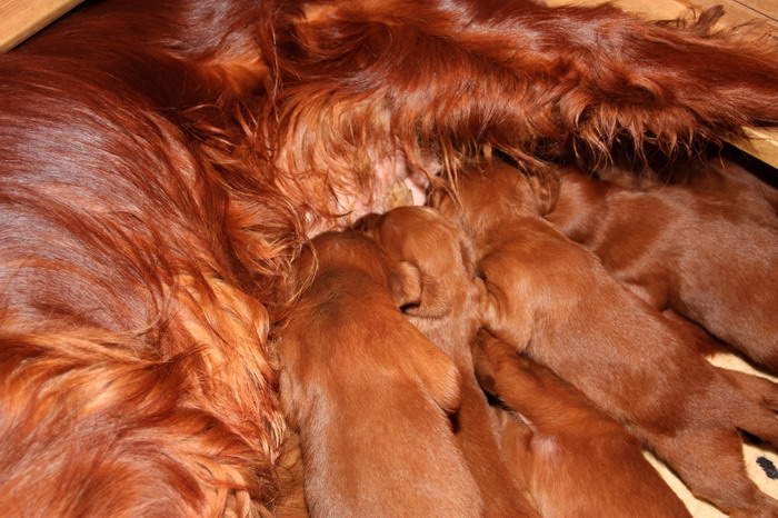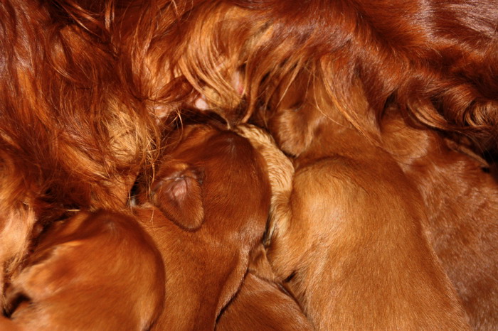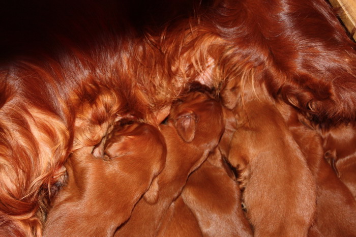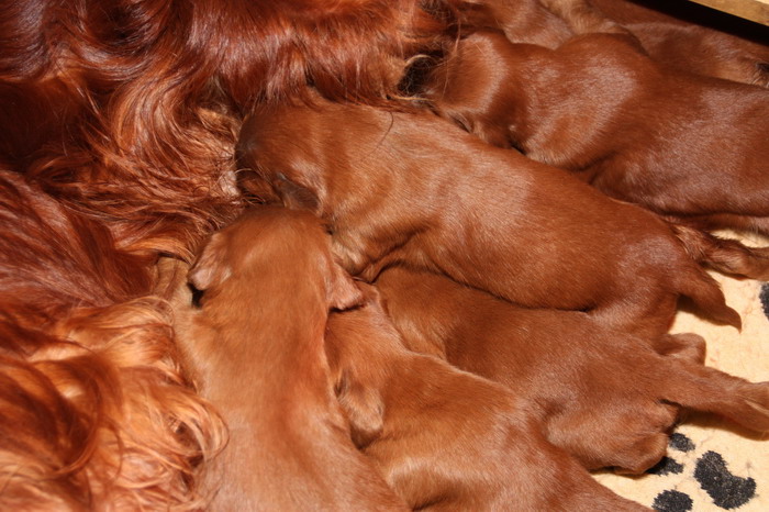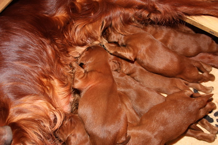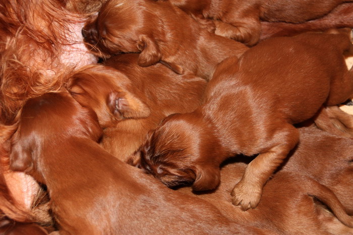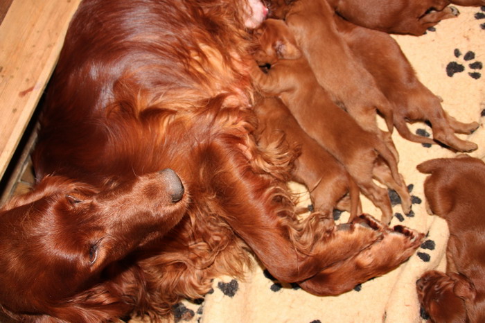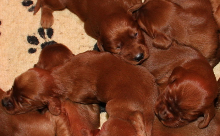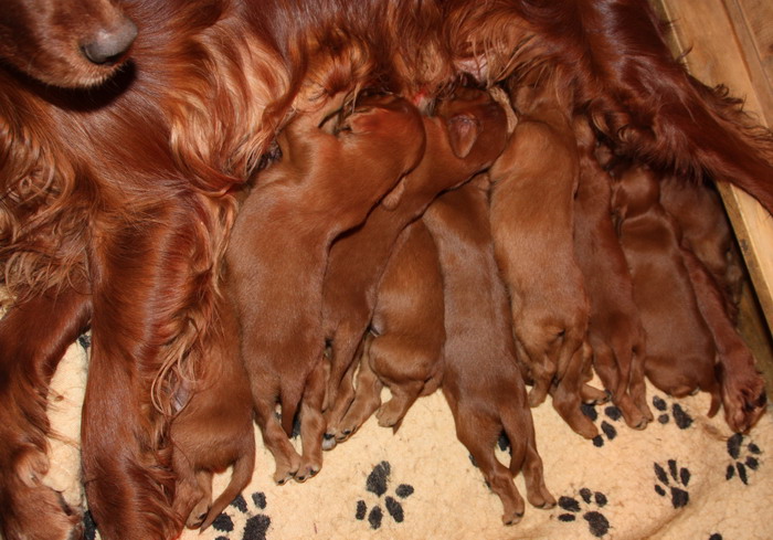 13.02.2010: Nun sind die Welpen 13 Tage alt. Alle 11 Welpen sind super wohlauf und putzmunter !