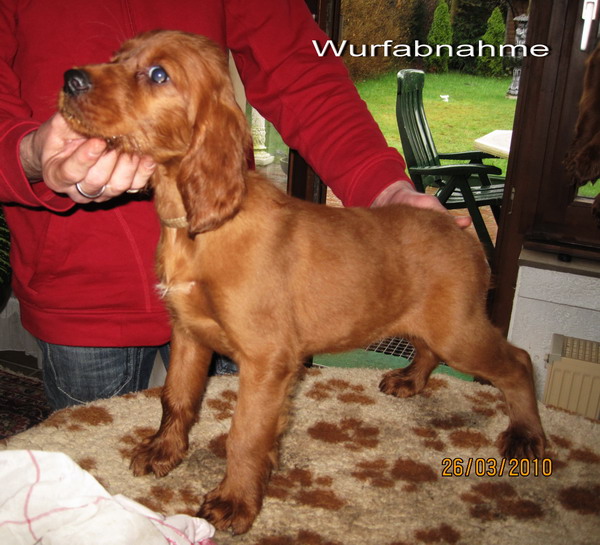 26.03.2010: Heute fand die Wurfabnhame statt. Der Regionalzuchtwart bestätigte einen fehlerfreien Wurf. Jetzt sind die Welpen gechipt, mehrfach entwurmt, geimpft und ab dem Wochenende gehen nun schon 5 Welpen in die neuen Familien.