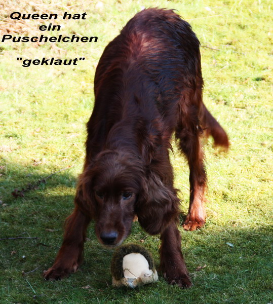 Queen genießt eine Welpenpause mit Bho-Ghy und einem "geklauten" Puschel!