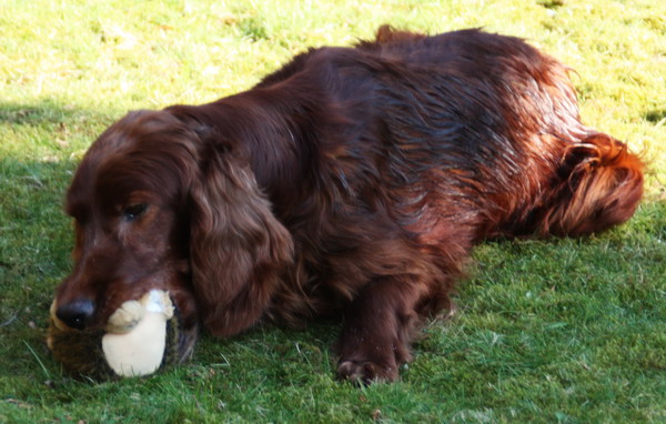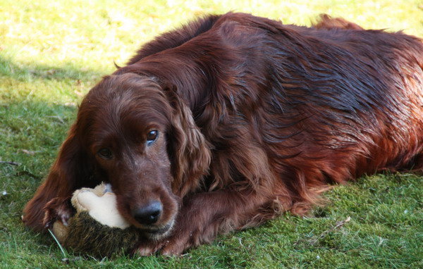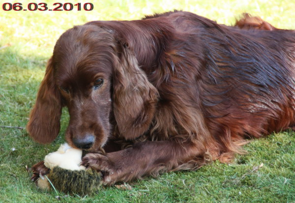 06.03.2010: Heute war ein aufregender Tag, denn die ersten Welpenkäufer besuchten die KLEINEN!!! Queen genießt eine Welpenpause mit Bho-Ghy und einem "geklauten" Puschel!