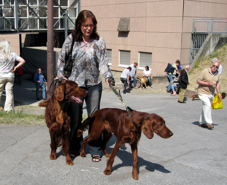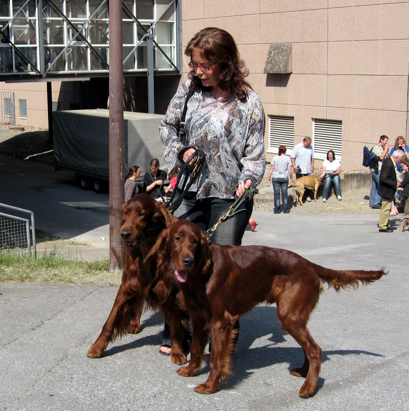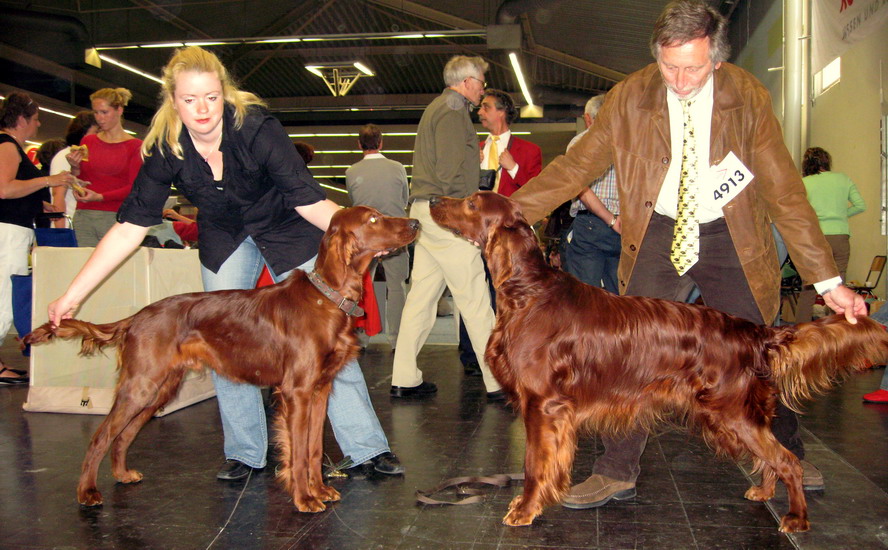 Links: Bho-Ghy mit Katja; Rechts: Fire = Bho-Ghys Vater mit Richard Didicher (Züchter u. Eigentümer) Fire gewann übrigens ALLES; V1 in der Championklasse; CAC, CACIB, BOB