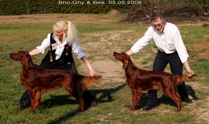 Bho-Ghy mit seiner Schwester "Bea" und dem Besitzer: Richard Didicher, 1. Vorsitzender des Irish-Setter-Club Dt. e. V.