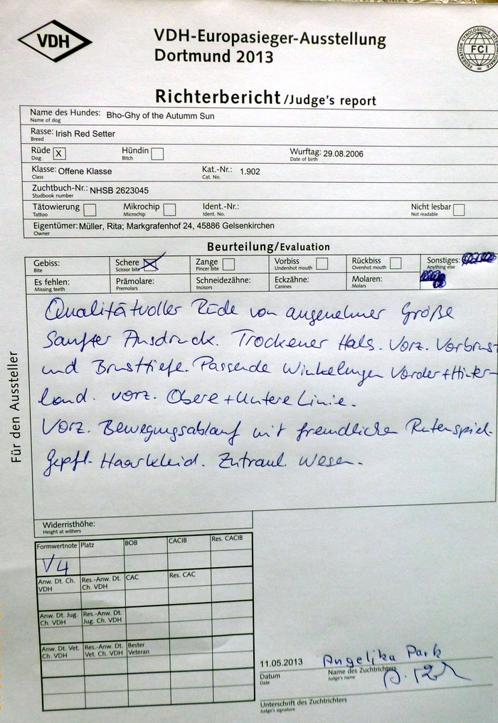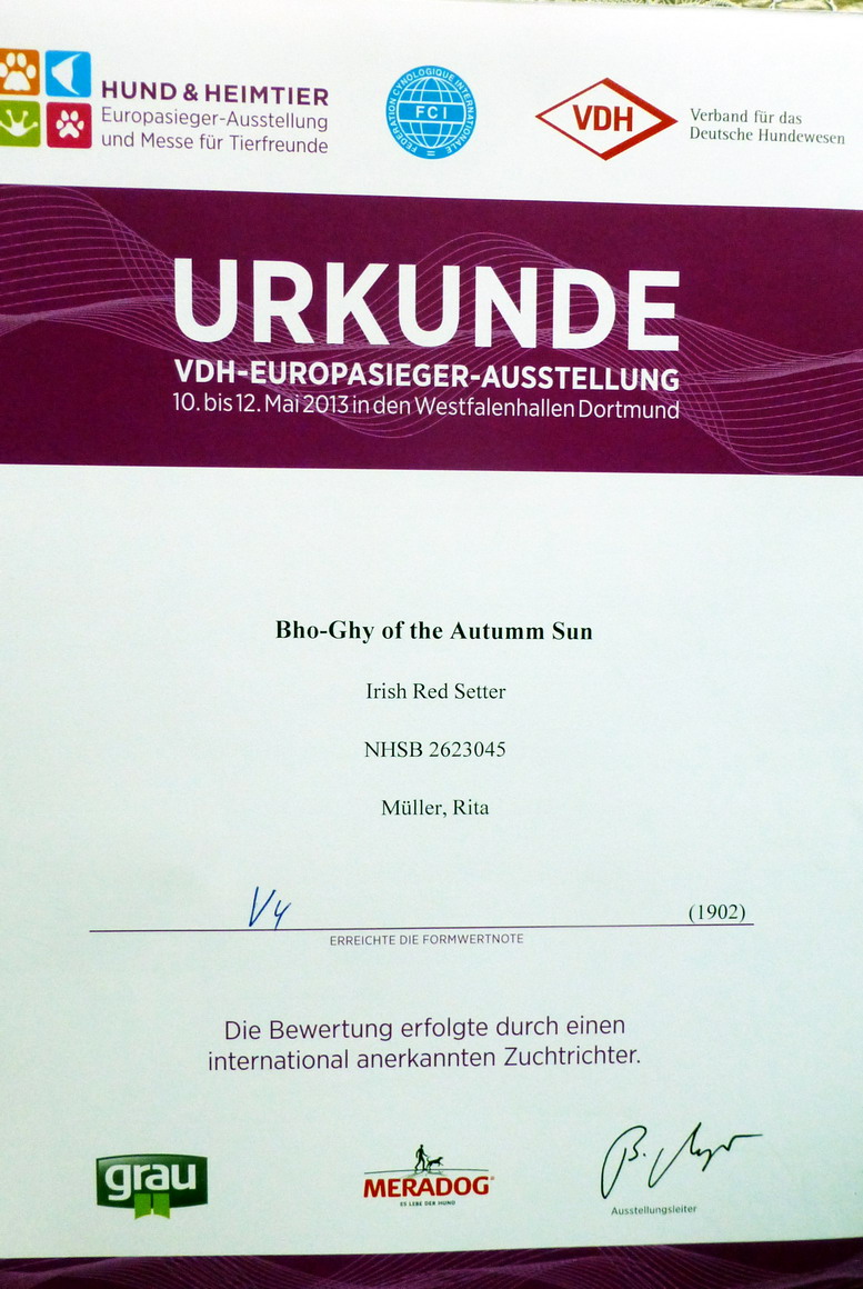 11.05.2013 Europasieger-Zuchtschau in Dortmund Bho-Ghy erhielt in der OFFENEN KLASSE: Vorzüglich 4