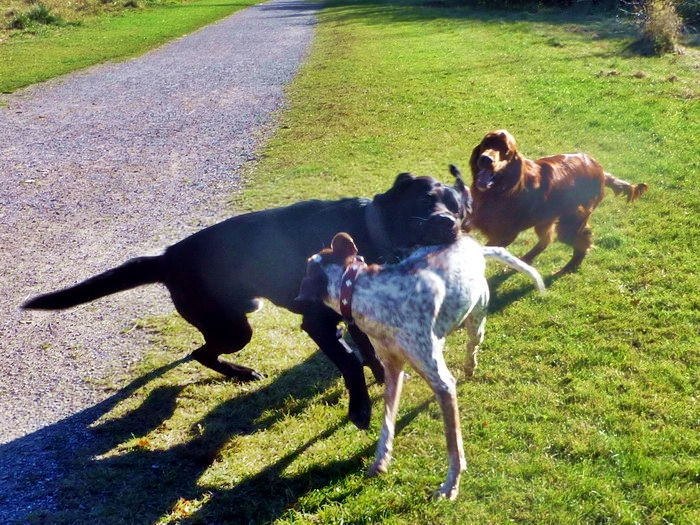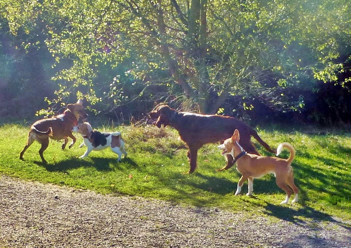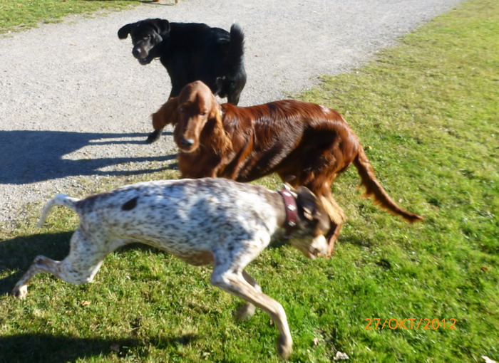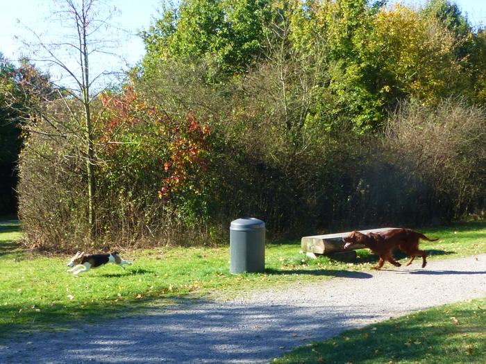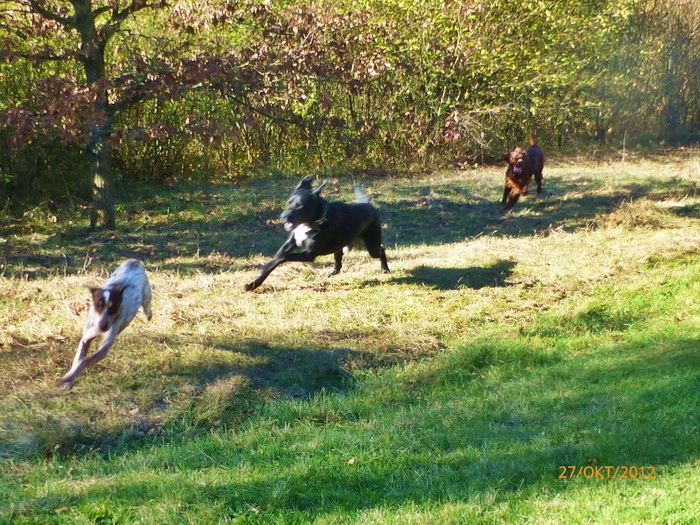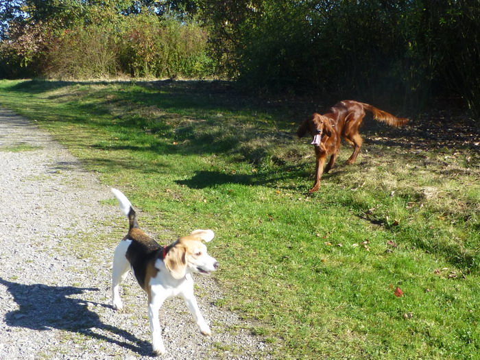 Bei 6 Grad im Sonnenschein entstanden Bilder in allen Positionen, Enjyno fühlt sich beim Spielen mit allen vierbeinigen Weggefährten pudelwohl....