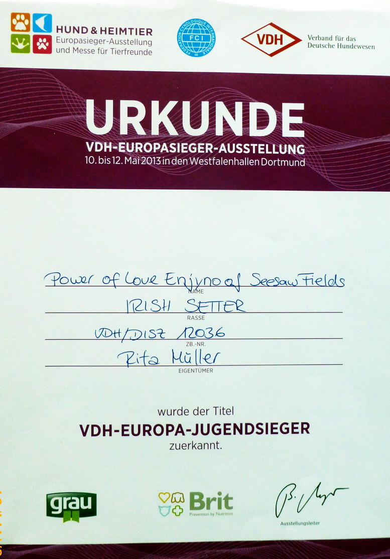 Enjyno wird EUROPA-JUGENDSIEGER & BESTER JUNGHUND !!!!!!!!!!!!!!!!