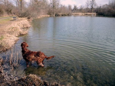 Einmal am Tag sind wir irgendwohin gefahren, zum Beispiel zu einem oberaffengeilen Auwald bei Egglfing mit ganz vielen Wildspuren und Bibern und Enten und Schwänen. Anfangs hat mich meine Schäffin sogar ohne Leine laufen lassen, aber nachdem ich ein paarmal versucht habe kleine "Abstecher" zu machen, war sie ein bißchen sauer und ich musste dort an der Roll-Leine laufen. Schade schade schade!