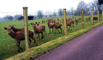 Anfangs waren alle Tiere ein ganzes Stück vom Zaun weg, aber dann kam schon die Rotwild-Schäffin an den Zaun.
