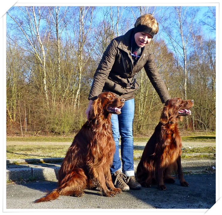 Linka: Bho-Ghy's Sohn Wotan (Rufmane Willi) mit Frauchen; rechts Papa Bho-Ghy