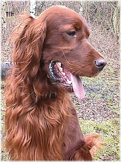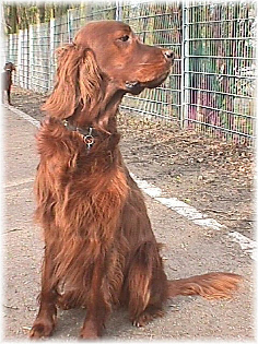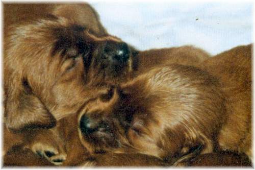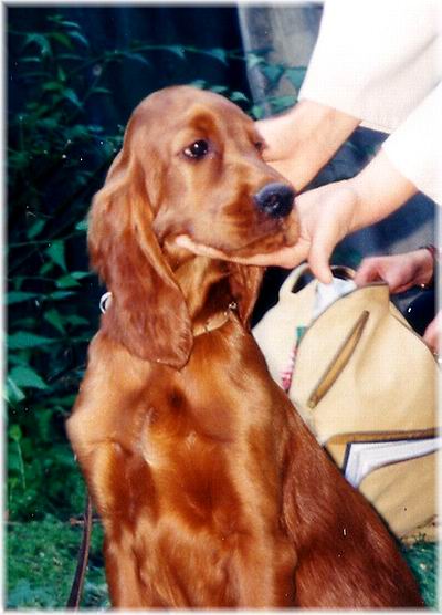 Als ich noch bei meinen Geschwistern und bei meiner Mutter und meinen Züchtern wohnte, war die Welt noch in Ordnung. Es herrschte Ruhe und Frieden. Doch dann änderte sich schlagartig mein Leben, als ich am 23.07.1995 während einer Ausstellung dem Frauchen des IS-Rüden TIMO und der IS-Hündin ABAQUAIL (seiner Mutter) vorgestellt wurde. Ich war ja erst 14 Wochen und noch völlig ahnungslos, wie sehr man mich sofort ins Herz geschlossen hatte. Als dann kurz darauf meine Züchter mit mir an einem heiligen Sonntag nach Gelsenkirchen fuhren, ahnte ich Schlimmes.