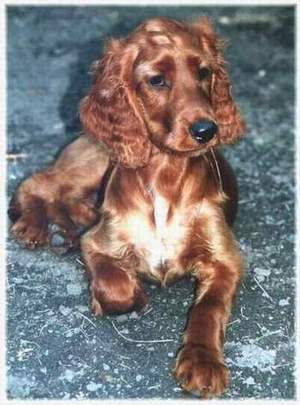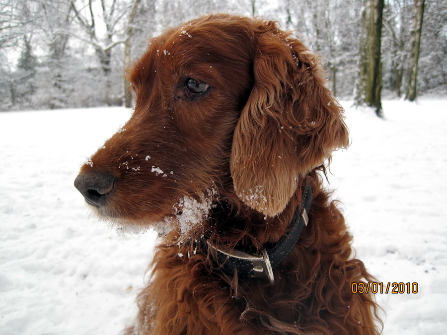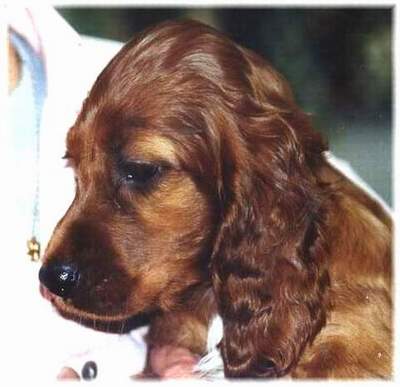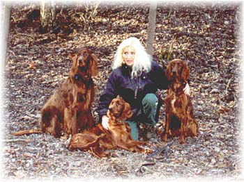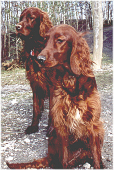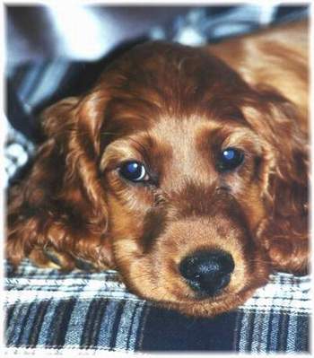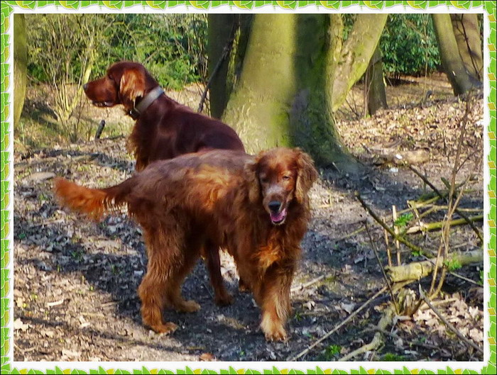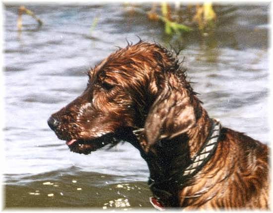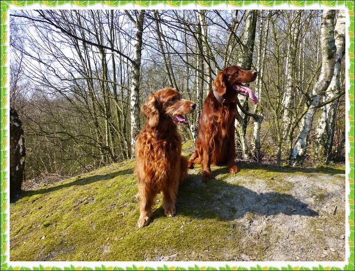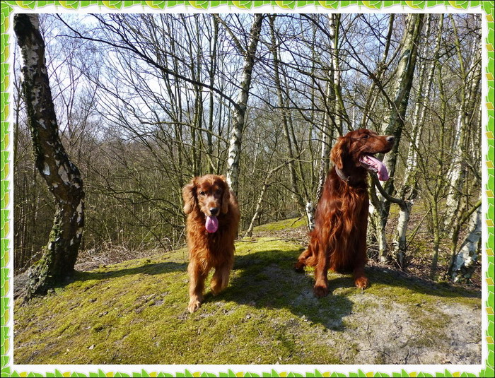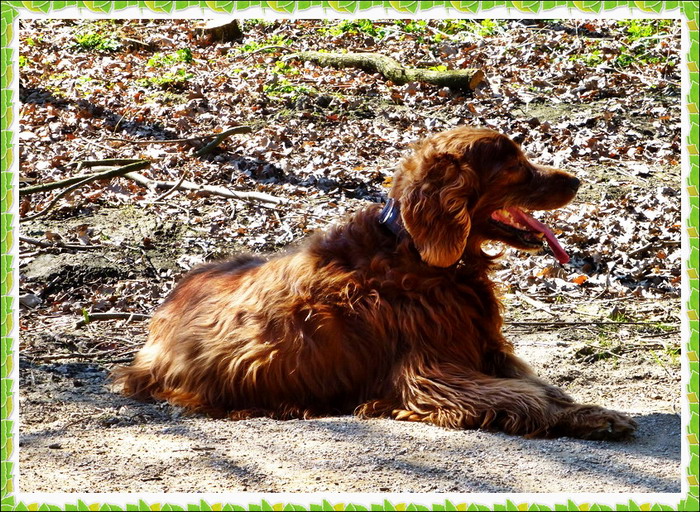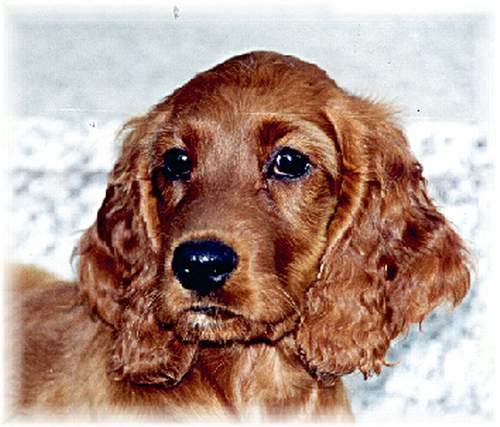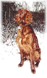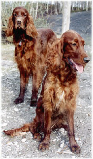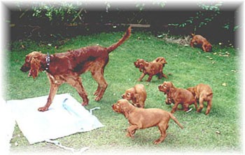LAGINIA kam als Welpe, 8 Wochen, zu uns in die Familie. Sie zeigte von Anfang an keine Scheu und wirbelte alles durcheinander. Weder DONOVAN, noch die anderen Tiere konnten ihr Temperament bändigen. Allerdings zeigte sie gleich zu Beginn ihres Daseins ihre Gelehrigkeit, ihre Spitzbübigkeit, ihre Neugierde u.s.w. Mit Frauchen absolvierte sie eine entsprechende Hundeausbildung mit anderen Irish-Settern auf unserem Hundeplatz. Sie hat jedoch ihre wilde und ungestüme Art, ihre überschwengliche Freude anderen Tieren und Menschen gegenüber bis heute noch nicht abgelegt. Laginia ist einfach ein immer fröhlicher und ausgelassener, wilder Setter.