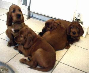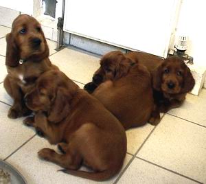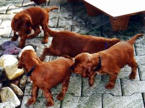 Benjury's Nachkommen: Nun sind sie genau 7 Wochen alt. Ich besuchte sie mit Benjury und stellte fest, dass sie genau so albern und ulkig sind wie ihr Hundevater.