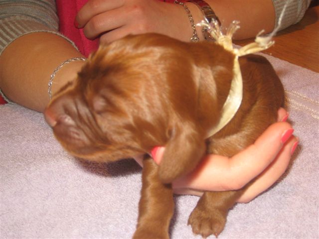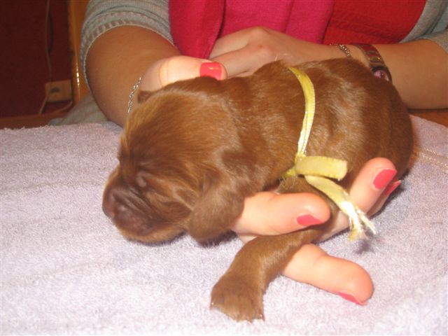 Bild 3878= Hündin, aprikot Bändchen, Baina