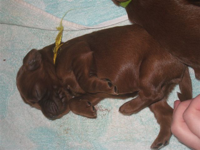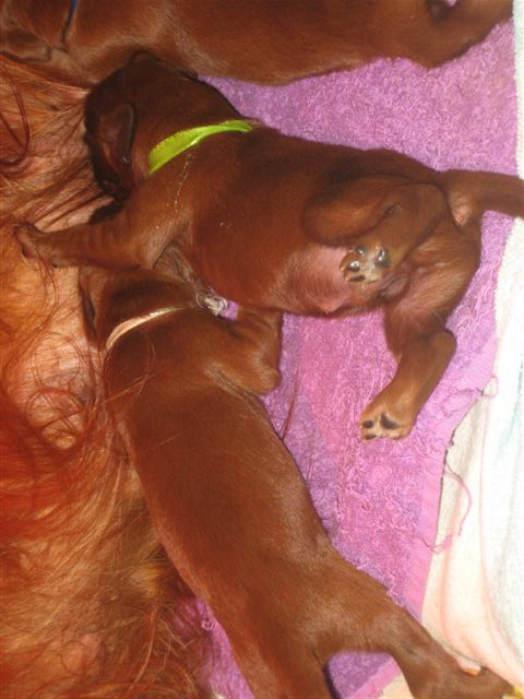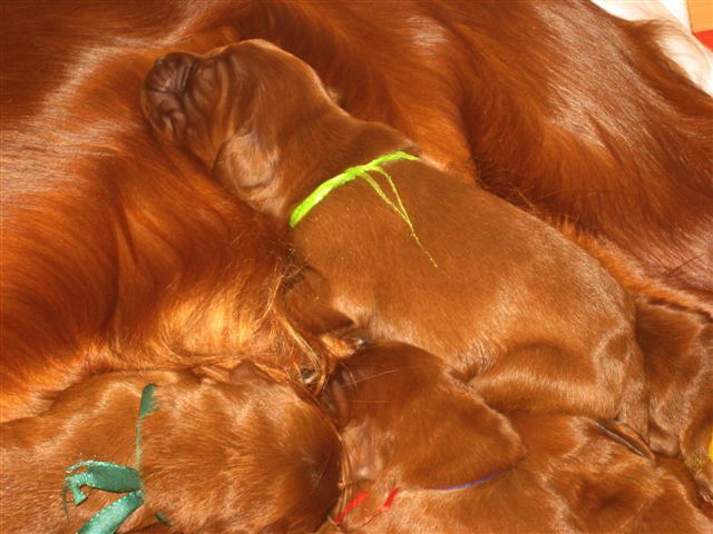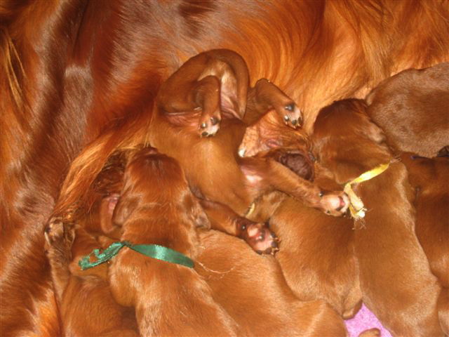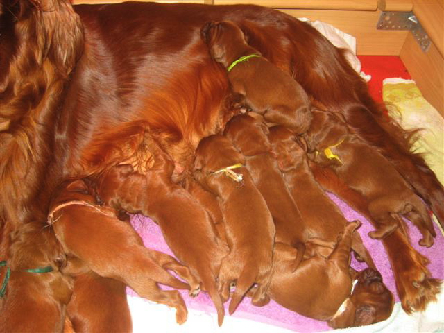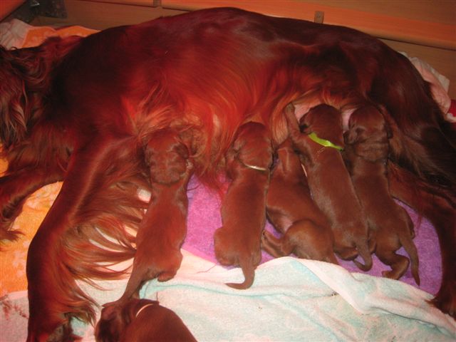 23.03.2010: Bho-Ghy ist zum 2. Mal Papa; Wir sind alle stolz auf die 11 Welpen von Leslie-Ann und Bho-Ghy; es sind 7 Rüden und 4 Hündinnen; Hier nun 5 Tage alt.