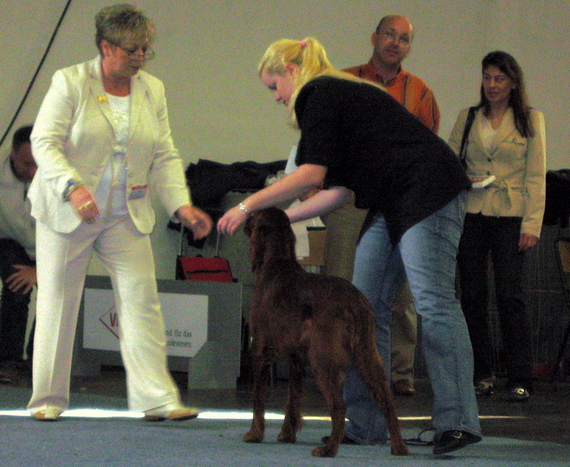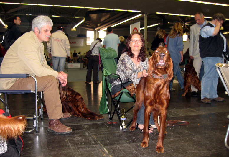 Links: Bho-Ghy mit Katja; Rechts: Fire = Bho-Ghys Vater mit Richard Didicher (Züchter u. Eigentümer) Fire gewann übrigens ALLES; V1 in der Championklasse; CAC, CACIB, BOB